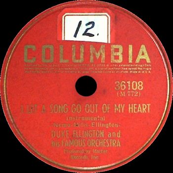 Reissue of BRUNSWICK m 8108 DUKE ELLINGTON and his FAMOUS ORCHESTRA 1938 The gal from Joe's I let a song go out of my heart |